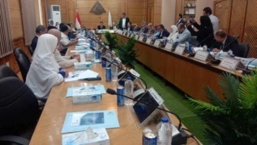 Benha University conducts its council under the auspices of prof.Dr. Nasser EL-Gizaway, the University president and in the presence of prof.Dr. Tamer Samir, the vice president of students and educational affairs, prof.Dr. EL-Sayed Fouda, the vice president of environment development and community service, the faculties’ deans, Ms. Shreen Shawky, the university secretary-general, the university council members and the assistant secretary-generals. The university president starts his speech by heartily thanking his Excellency Mr. President/ Abdel Fattah EL-Sisi, the Prime Minister, and the Minister of higher education and scientific research for entrusting him as Benha University President. He also thanks the university’s employees for their exerted efforts during the academic year and asks for more population growth awareness forums